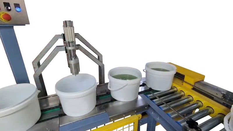 Máquina de envasado de cubos.