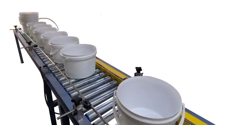 Ofrece un transporte eficiente mediante caminos de rodillos, garantizando un flujo continuo y seguro de los envases.